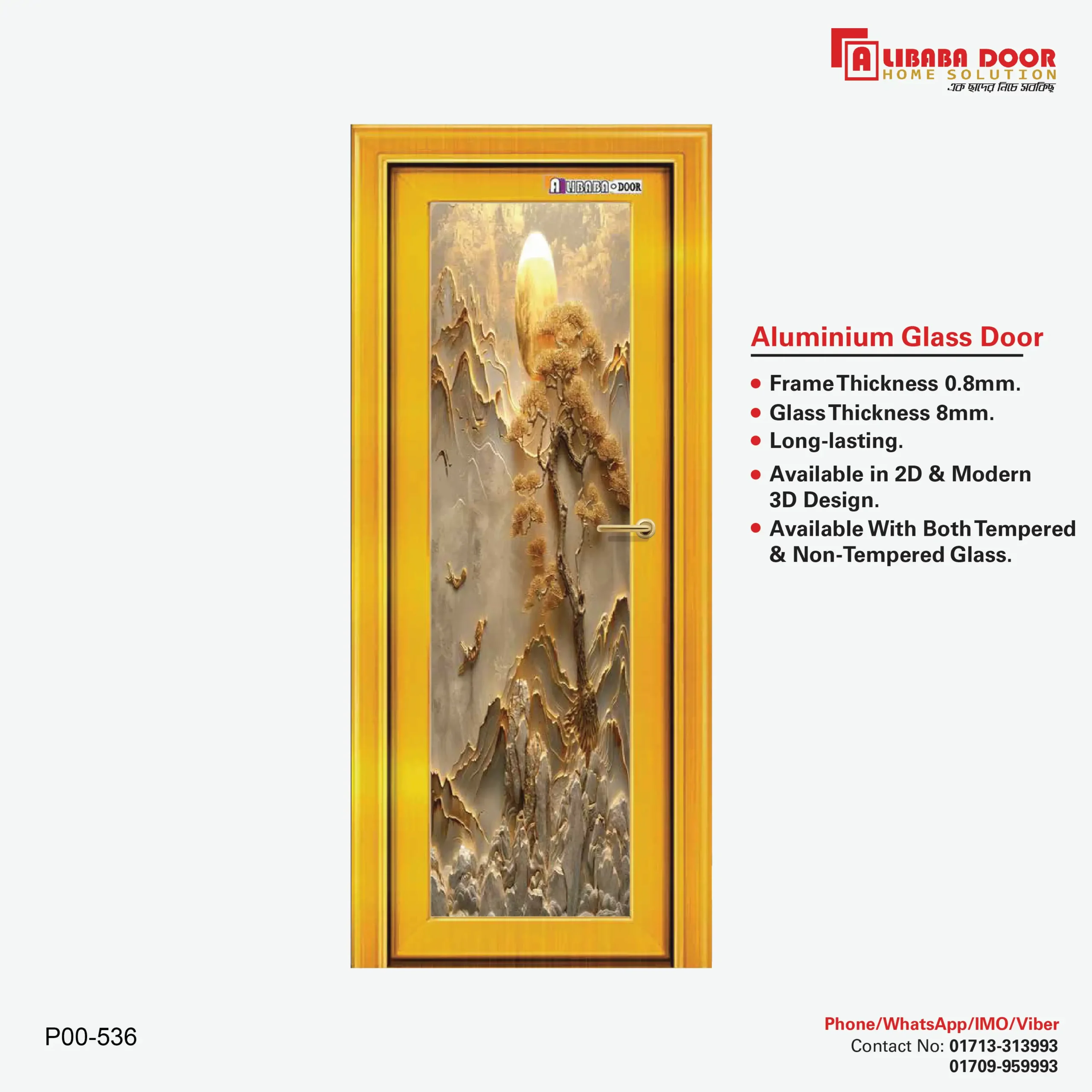 Premium AliBaBa ‍Stylish Aluminum Glass Door for Home & Office – P00 536