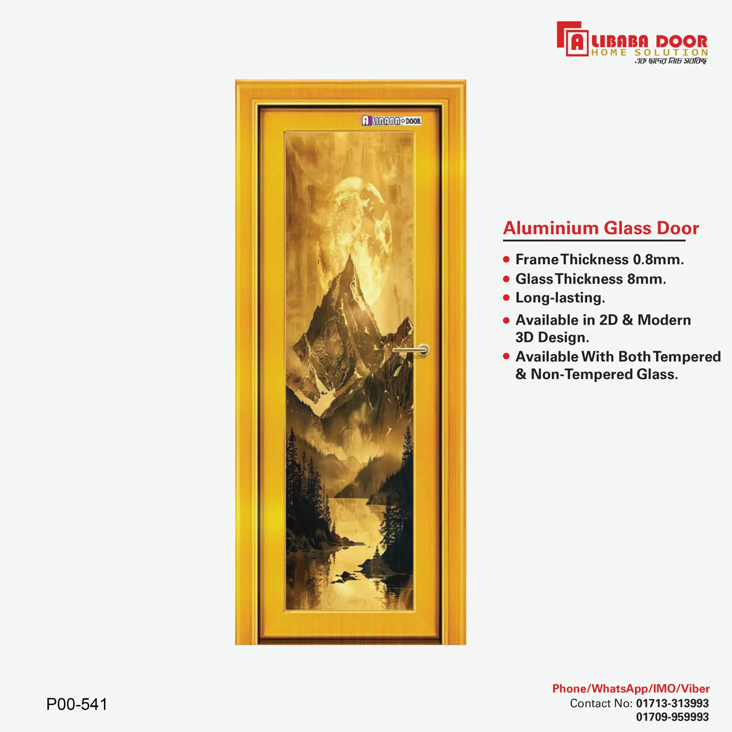 Premium AliBaBa Stylish Aluminum Glass Door for Home & Office – P00 541