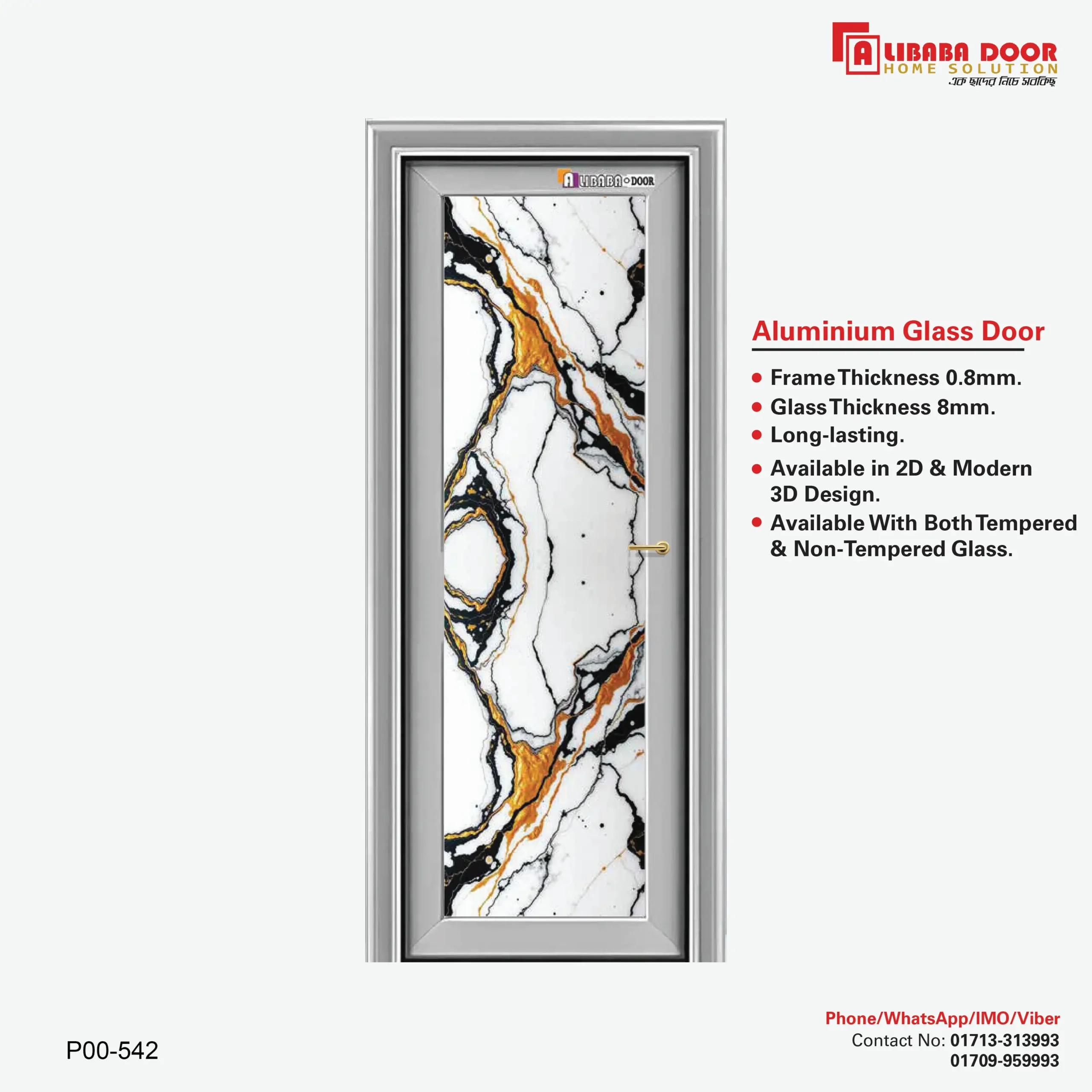 Premium AliBaBa ‍Stylish Aluminum Glass Door for Home & Office – P00 542