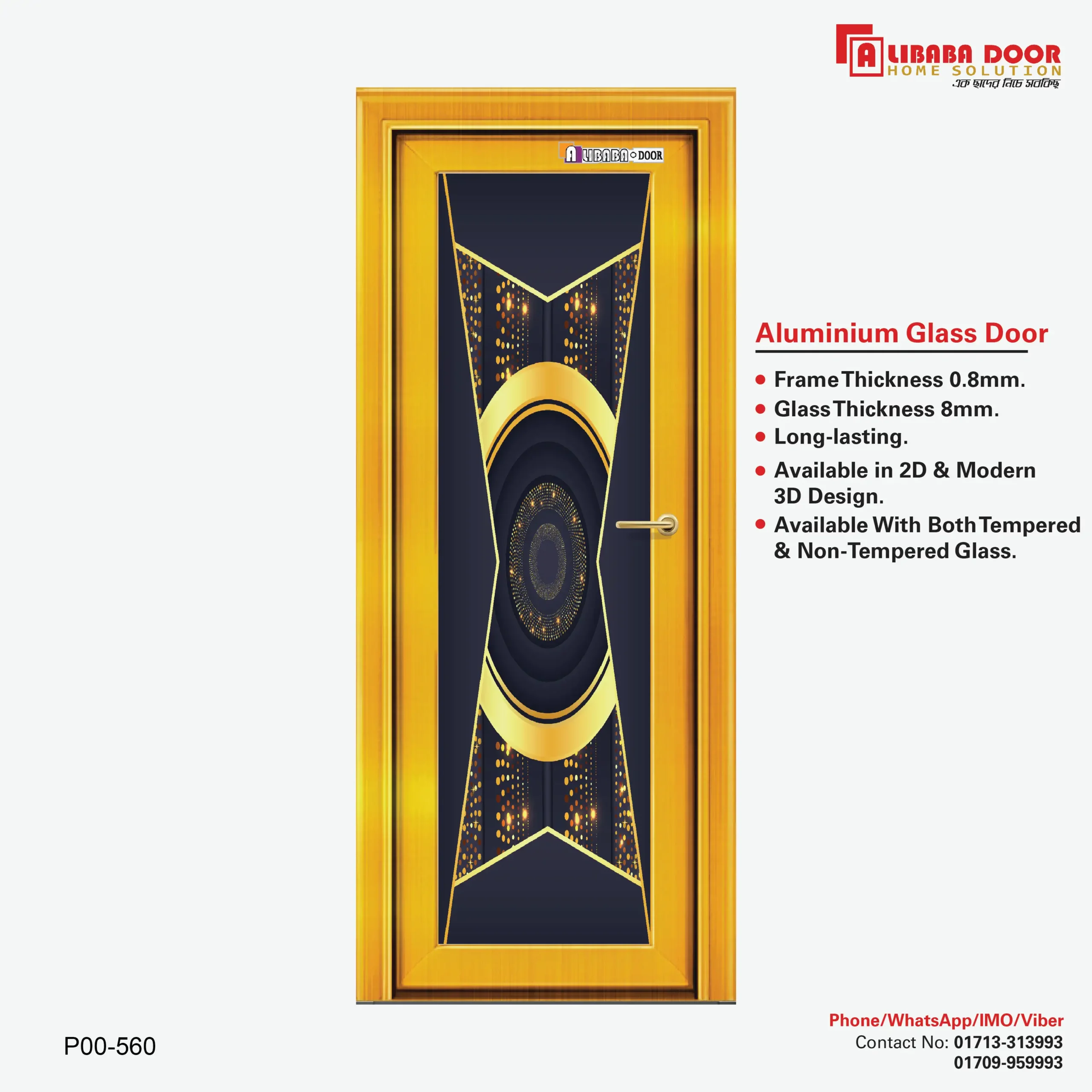 Premium AliBaBa ‍Stylish Aluminum Glass Door for Home & Office – P00 560