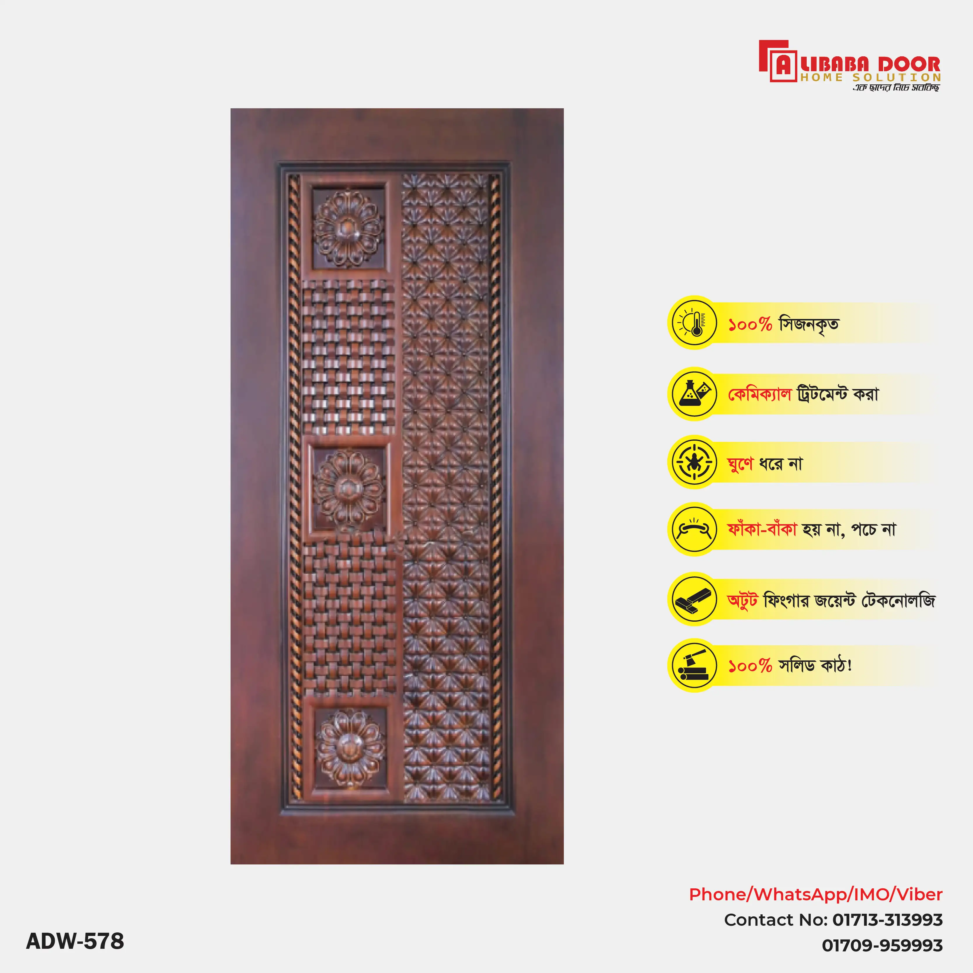 Premium Luxury Wooden Door ADW 578 | Burma Teak, Chittagong Teak & Mahogany