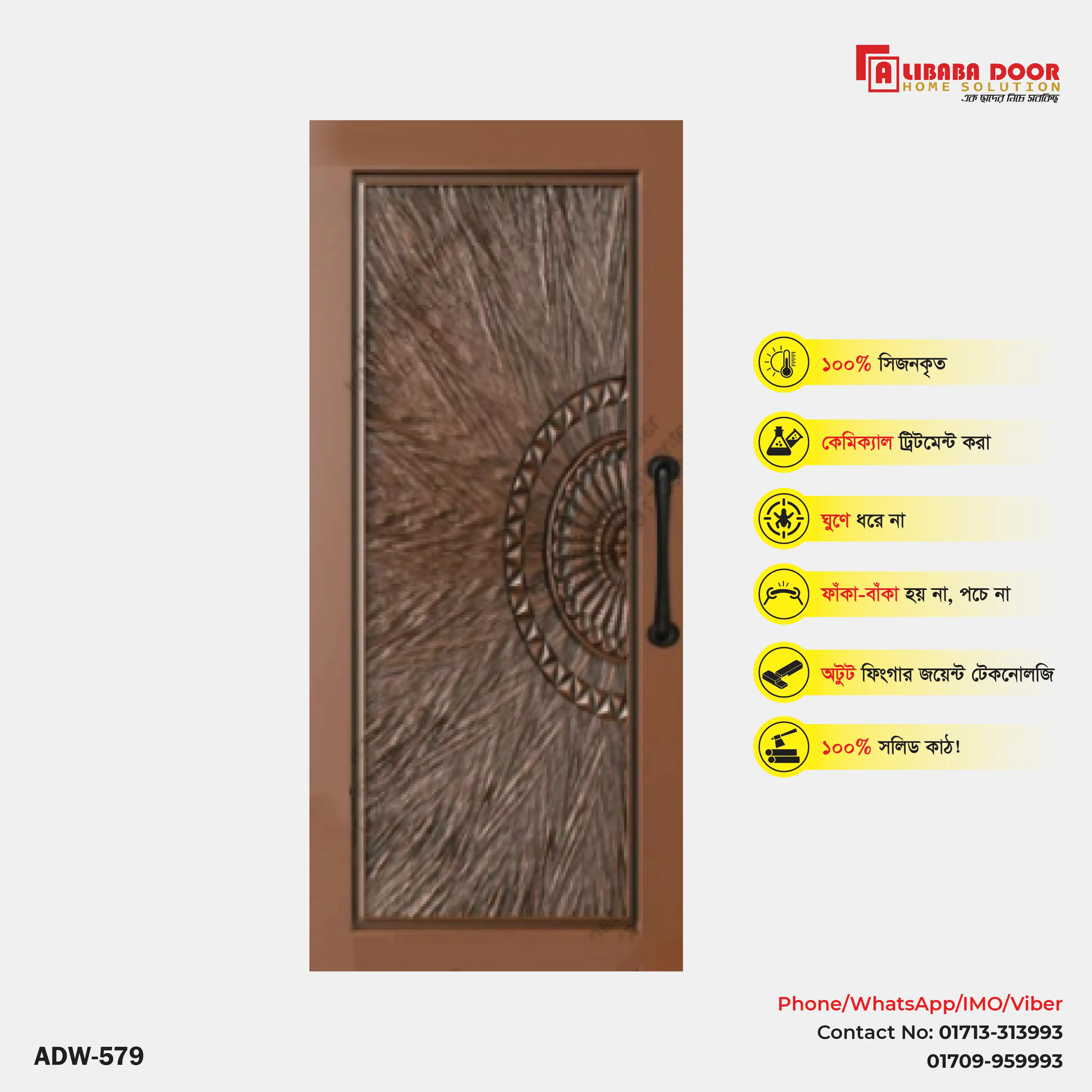 Strength, elegance, and durability were brought into perfect harmony with a solid wooden door ADW 579 from AliBaba Door & Home Solution. The best known types of wood are Burma teak, Chittagong teak, and Mahogany. This door has been designed so that it will continue serving your family, enhancing its beauty as well.