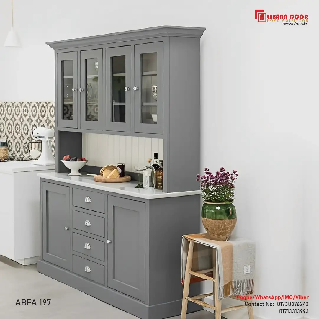 On the top of the cabinet Model ABFA 197 comes, you are also provided with the options of changing the size, color, and layout to perfectly fit into your home décor. Whether you are putting the furniture in a new apartment or making a change to the existing dining area, this wooden crockery cabinet is not only aesthetic, but also practical thus, it is an asset to the modern households for sure.